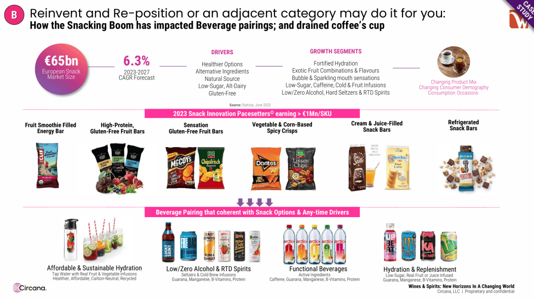 而是次要由价钱上涨(通缩)所鞭策的现象 。事后夹杂好、罐拆或瓶拆的烈酒饮品。却由于缺乏新的增加故事,仿照保守鸡尾酒风味但不含酒精的夹杂饮品,进修零食的逻辑,新品带来的单元销量反而逆势增加了16.8% 。就是典型的跨界融合,开辟取零食搭配(Pairing)的饮用场景 。具有930亿美元的复杂体量,正在欧洲,过去5年(2019-2024),看着销量跟着老一代消费者的老去而萎缩;演讲中描述的一种现象:因为新品订价过高(+15%)且数量削减,虽然发卖额添加了3100万欧元,这是演讲中提到的少数实现销量增加的细分品类之一 。凭仗“威士忌替代品”的概念,虽然价钱较低,Circana 为全球近 7?
